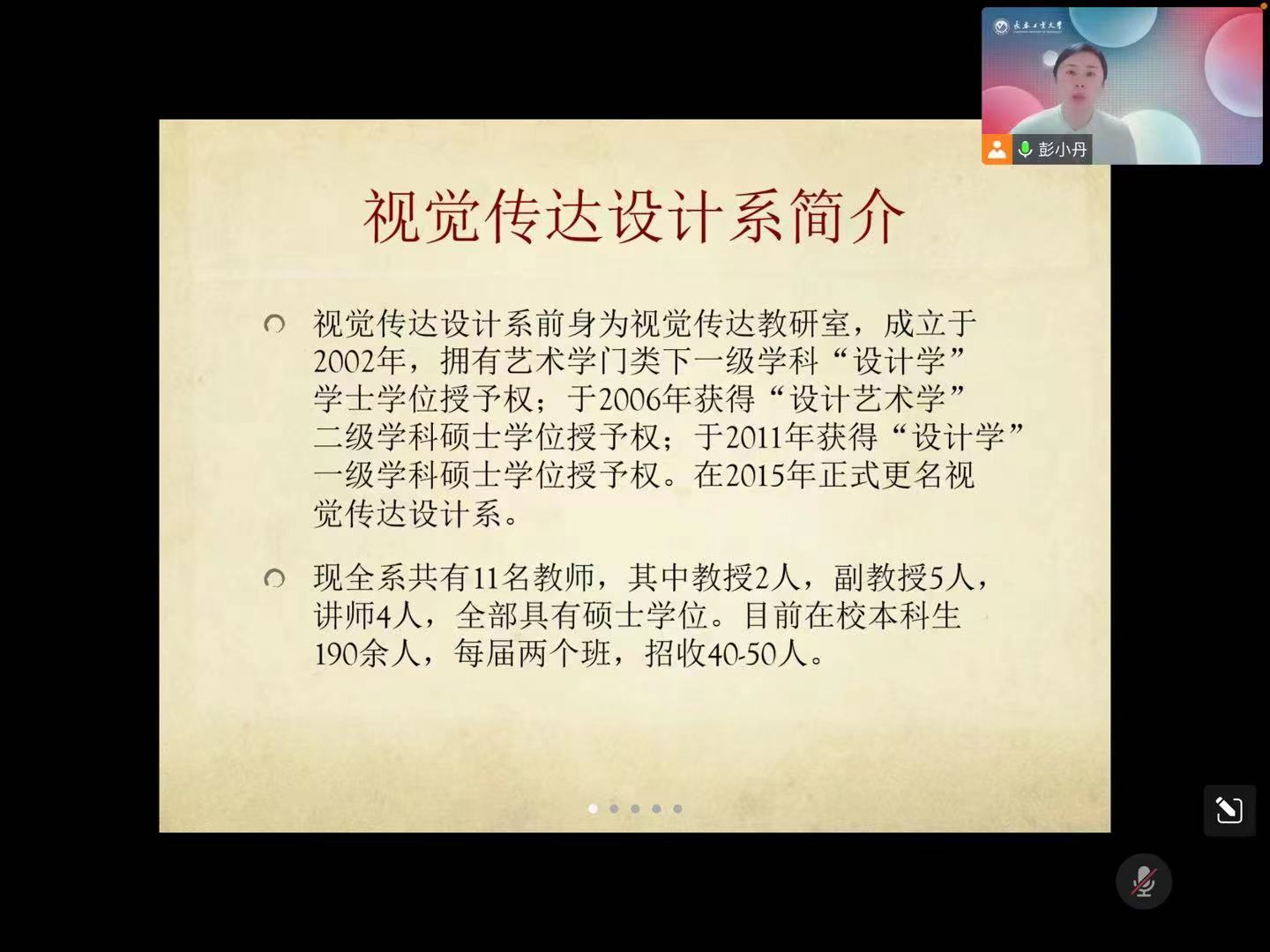 网讯(通讯员 于丰硕)9月7日19时,视觉传达设计系专业介绍会暨班导师见面会通过腾讯会议顺利召开,系主任彭晓丹、班导师魏妍妍和张烨烨参会,会议由彭晓丹主持。