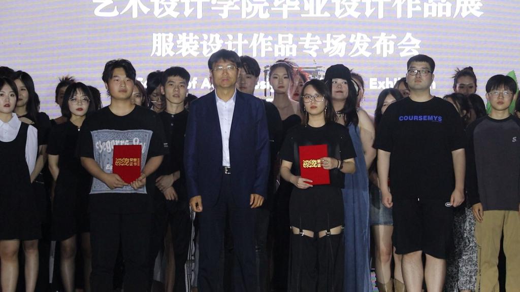 吴成章为最佳男装设计奖获得者杨明发同学、最佳女装设计奖获得者周子涵同学颁发证书。副校长金光勇为面料运用奖获得者张海洁、杨子薇同学、市场潜力奖获得者刘思润、何杰同学颁发证书。