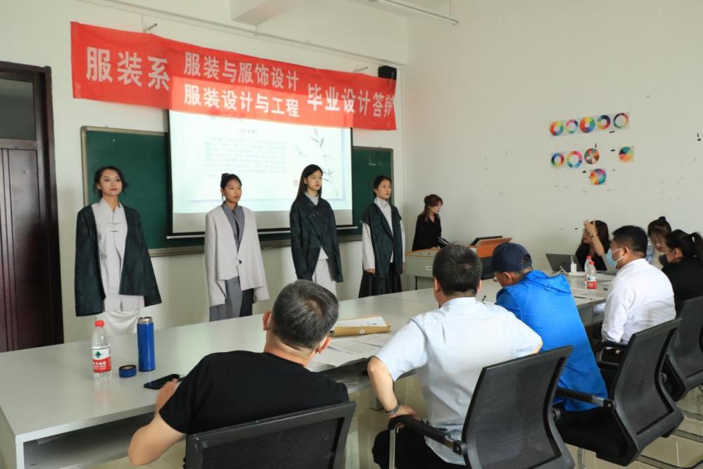 服装系毕业生精心准备,以PPT结合成衣作品阐述的形式将选题目的、理论框架、研究内容、研究结论等,以饱满的热情、认真的状态展示自己的专业能力;答辩评审教师们本着专业负责的态度,从选题结构、理论掌握、创新点等方面提出中肯建议。