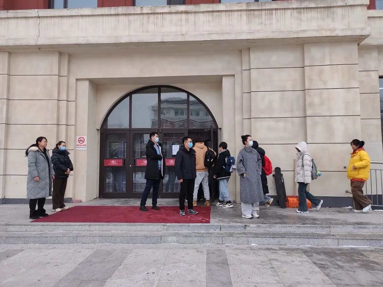 全体辅导员在艺术楼前迎接同学们