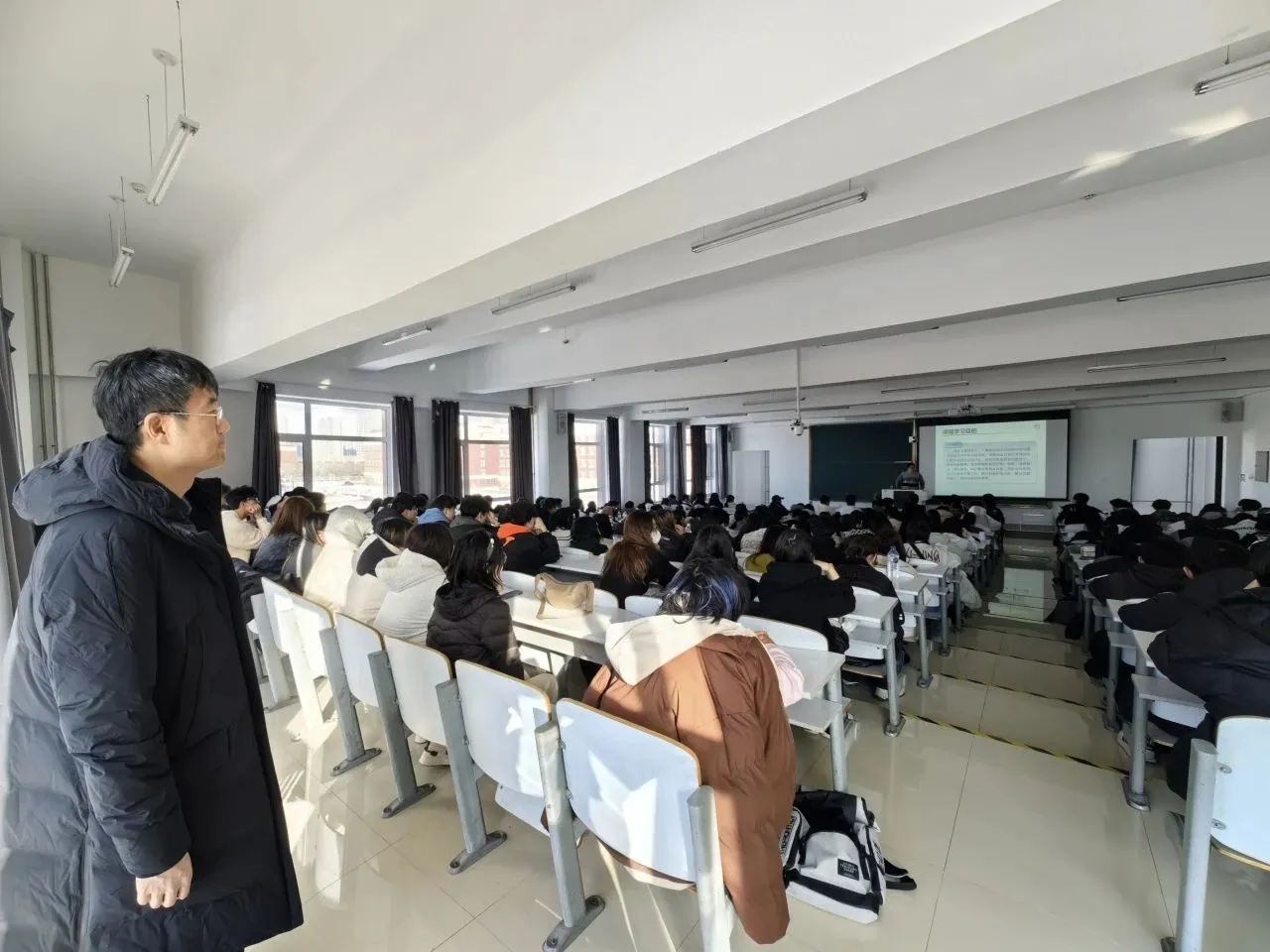 整体教学工作运行情况良好、秩序稳定,师生迅速进入学习状态,以饱满的精神面貌迎接新学期的学习生活。全体辅导员在艺术楼前迎接新学期第一天第一节上课的学生;任课教师准时到岗,授课内容丰富有趣;学生提前到达教室做好上课准备,出勤率高,精神状态饱满;师生之间积极互动交流,课堂气氛活跃,以良好的学习风貌开启了新一轮的成长与进步。