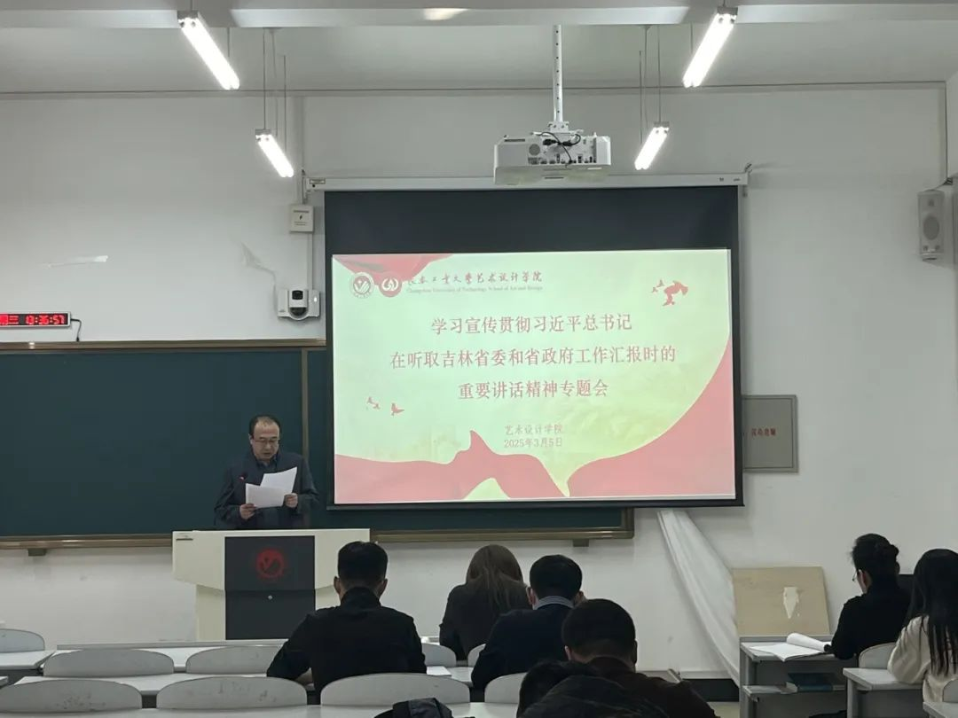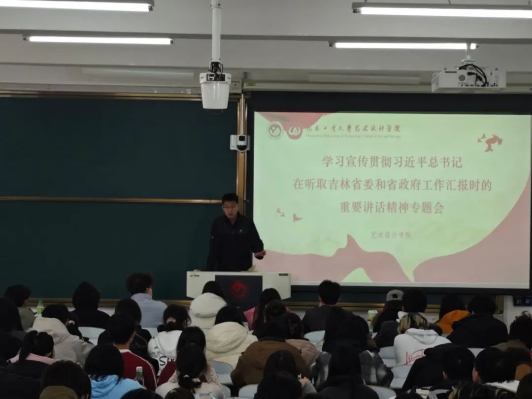 党委高度重视,要求各年级辅导员以年级会形式开展集中宣讲,结合专业特色解读“新时代东北全面振兴”战略。将课程作业与吉林文旅IP设计、非遗活化项目结合,用设计语言讲好东北振兴故事。