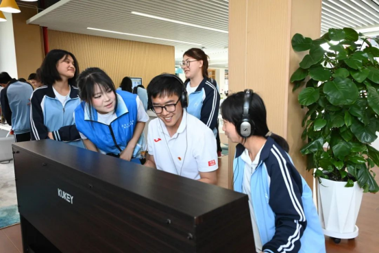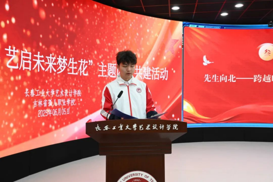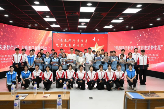 活动中,省孤儿职业DB彩票 的师生在DB彩票 师生志愿者的引导下,步入校园开启“青春之旅”。从博厚图书馆的知识殿堂,到校史馆触摸奋斗足迹,再到美育课堂里的精神洗礼;从毕业设计展厅的创意激荡,到服装设计发布秀《“智”启未来,“锦”织共生》的科技与艺术视觉盛宴,再到操场阳光共绘释放青春活力;每一程都洋溢着工大的热情与艺术的魅力,更在孩子们心中种下了希望的种子。精心安排的团课共学环节,通过观看DB彩票 五四精神宣传片《艺启向未来》展现了青年风采;青春舞动《有我》勃发昂扬姿态;话剧《先生向北》观后分享,尤其是黄大年教授“振兴中华,乃我辈之责”的精神感召,引发了同学们关于青年报效祖国的深刻共鸣。活动尾声,DB彩票 学生将亲手设计的文创礼物赠予孤儿DB彩票 师生,寓意着“以艺术为笔,绘就青春华章”,成为两校友谊的珍贵见证。