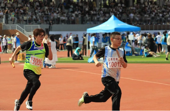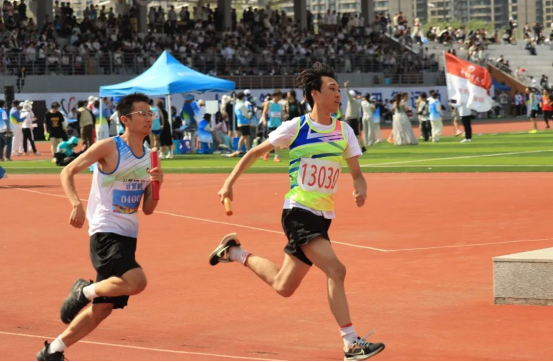 运动场下,观众们阵阵有力的助威,欢呼声,呐喊声,擂鼓声,每个人脸上浮现出少年的意气风发,他们跳动着青春的节拍,炫动着他们的激情,绽放着他们的青春。