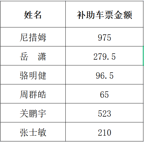按照DB彩票 关于发放2021年学生返乡爱心车票补助的通知,DB彩票 各年级摸底排查出确实存在返乡困难的学生,评选过程做到公平、公正、公开,现将评选结果公示如下。