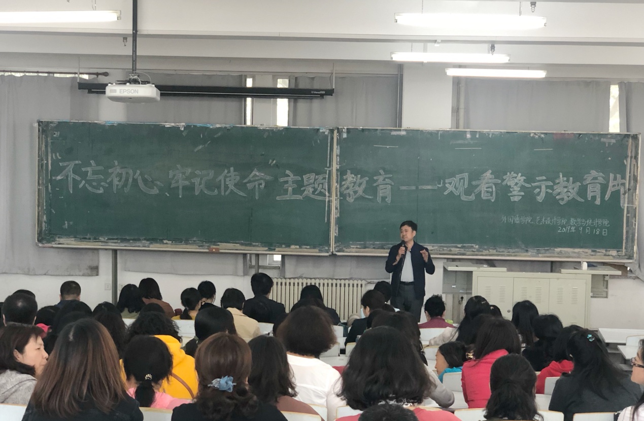 为深入开展“不忘初心、牢记使命”主题教育活动,进一步筑牢广大教职工拒腐防变思想道德防线,9月19日下午,DB彩票 、外国语DB彩票 、数学与统计DB彩票 共同组织全体教职工集中学习警示教育纪录片《不忘初心 警钟长鸣》。