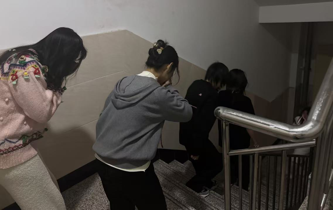随后,带领部分同学在学生宿舍开展了实地消防疏散演练,同学们用湿毛巾捂住口鼻,弯腰俯身,沿着安全通道有序、迅速地疏散至安全场地。