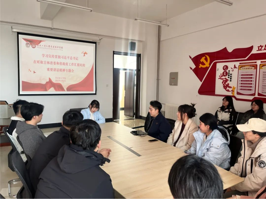 学习会上,侯天放领学解读习近平总书记重要讲话精神,重点围绕"新时代推动东北全面振兴"的战略部署,结合艺术设计学科特色开展"文旅融合赋能乡村振兴"案例教学。与会师生集体研读总书记关于"加强文化遗产保护利用,培育文旅产业新增长点"的重要论述,就"艺术设计在东北文旅产业升级中的创新路径"展开专题研讨。