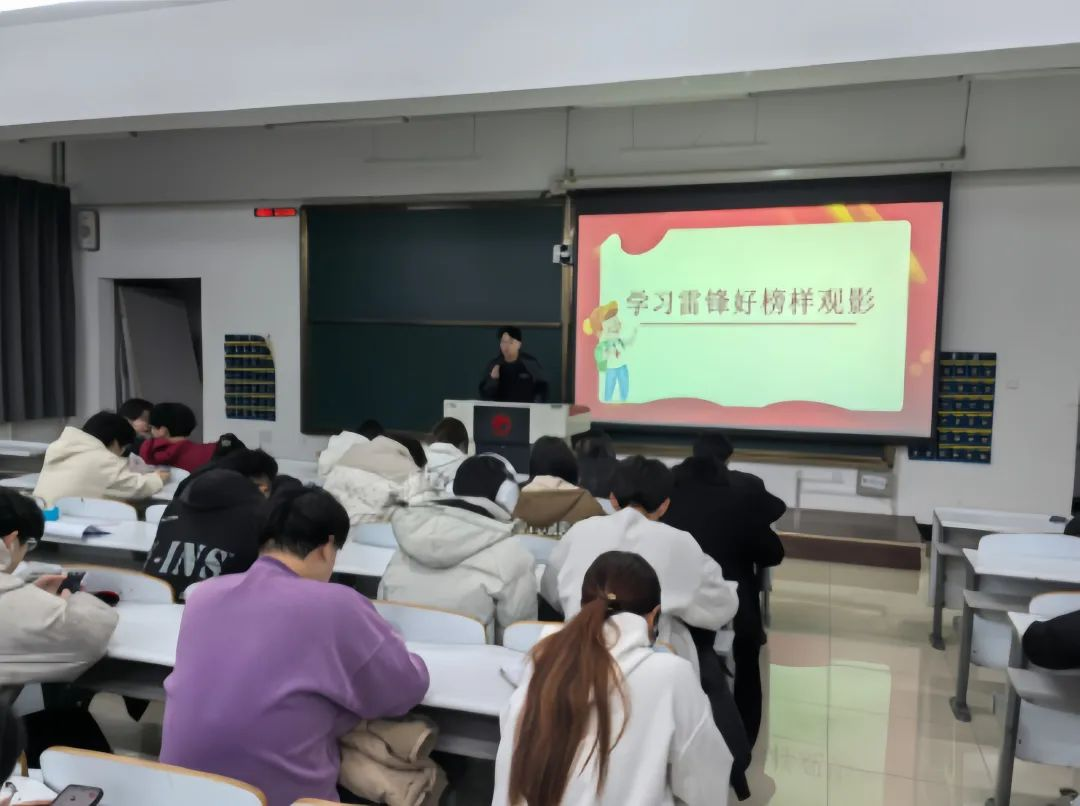活动伊始,雷锋的故事在大荧幕上徐徐展开。影片中,雷锋用他平凡而伟大的一生,诠释着无私奉献、助人为乐的高尚品质。从帮助战友缝补衣物,到利用休息时间帮厨,再到倾尽全力救助受灾群众,每一个画面都深深打动着在场的同学们。大家沉浸在影片里,被雷锋精神深深吸引,阶梯教室里安静得只能听到影片的声音。