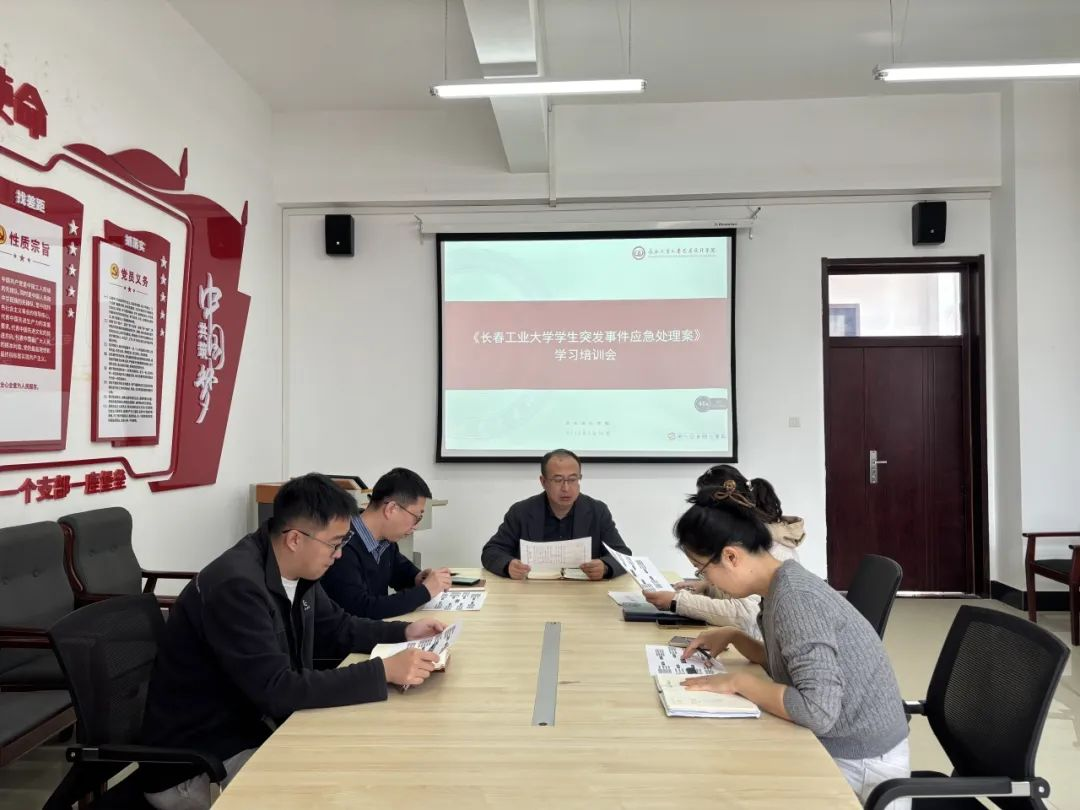 党委副书记楚玉彪主持,全体辅导员参会。本次培训旨在强化责任意识、明确处置流程,确保在突发事件发生时能够快速响应、科学应对,全力守护学生安全与校园和谐。