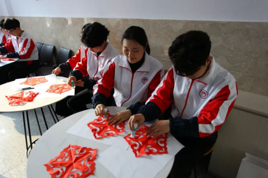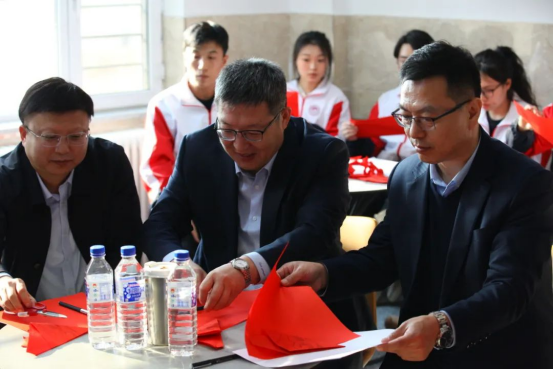 学生代表共同参与,以非遗剪纸艺术为媒,共筑红色文化传承与校园美育融合的实践新场景。