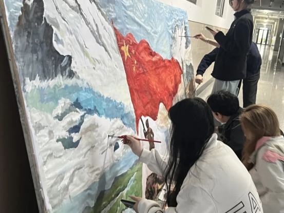 组织学生志愿者,以“国家安全 青春挺膺”为主题,共同绘制了一幅长2米的主题板报,通过艺术创作传递国家安全理念,展现青年担当。