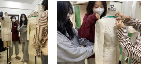 服装立体结构设计课程积极克服线上实验教学的诸多困难,积极探讨疫情期间实验教学的可控性与实现性。在实验教学过程中理论教师与实验教师黄珂琤老师同时在线辅导,采用项目驱动法(学生以寝室为项目小组),以流行趋势和市场需求为依据,将立体结构设计的知识点和能力点融入其中,在项目实施过程中,学生模拟项目主管、款式设计师,结构设计师,工艺设计师,样板设计师等角色,教师则给予积极指导。极大的丰富了实验教学内容,使学生在实验操作过程中从获得感性知识上升到理性认识并获得实践能力的提高。同时,也激发了学生的学习热情和积极性。