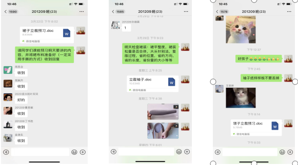 李凤仙老师在业余时间通过微平台解答学生疑问,协助学生完成不同款式的立体结构设计,切实做到线上和线下教学紧密结合,使线上课程的教学交互从课前贯穿课中至课后,实现“任务引领、教师主导、学生主体”。